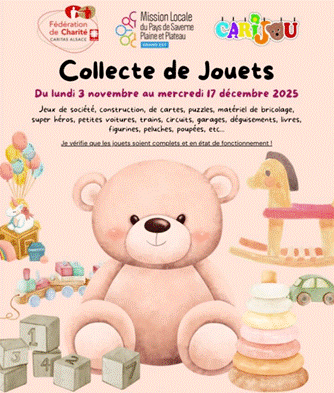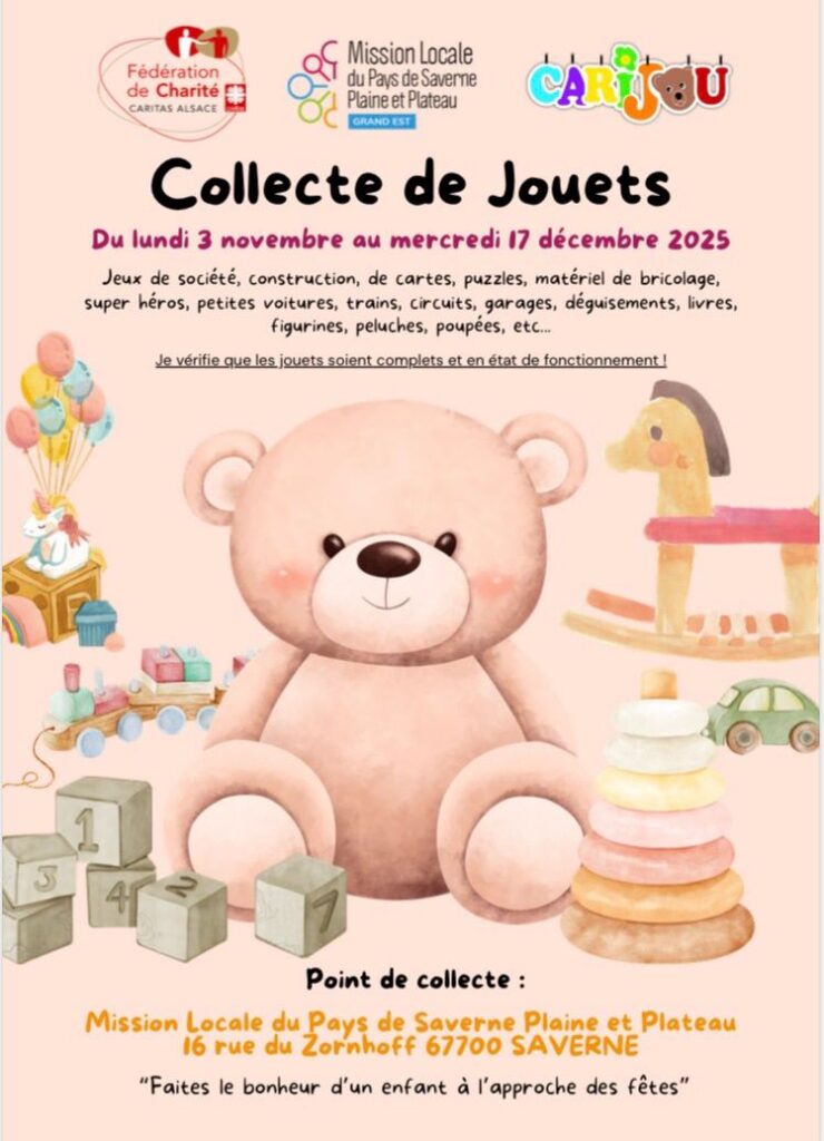 novcollecte de jouets à saverne à la mission locale du 3 nov au 17 dec
